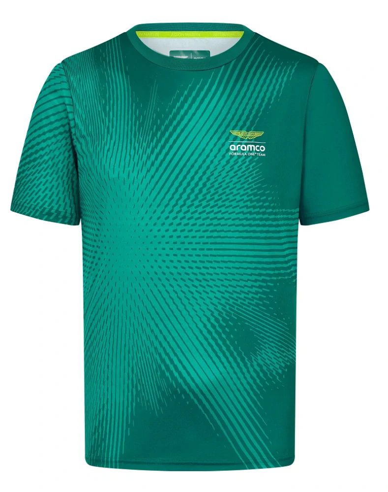Originální prémiové příjemné lifestyle tričko Aston Martin v tradičních barvách i atraktivním pojetí, zdobené originálním logem Aston Martin z aktuální prémiové kolekce Aston Martin Formula One Team.